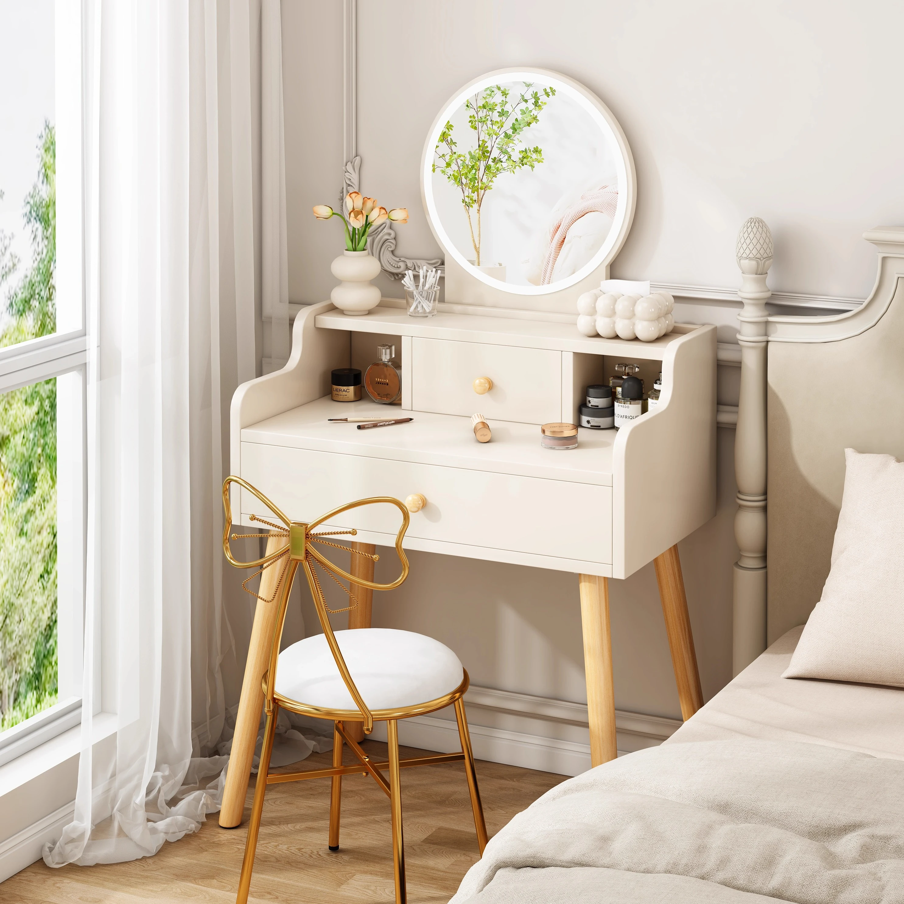 2025 New Cream Style Makeup Vanity Desk - Elegant All-in-One Storage Cabinet and Dressing Table for a Luxurious Touch