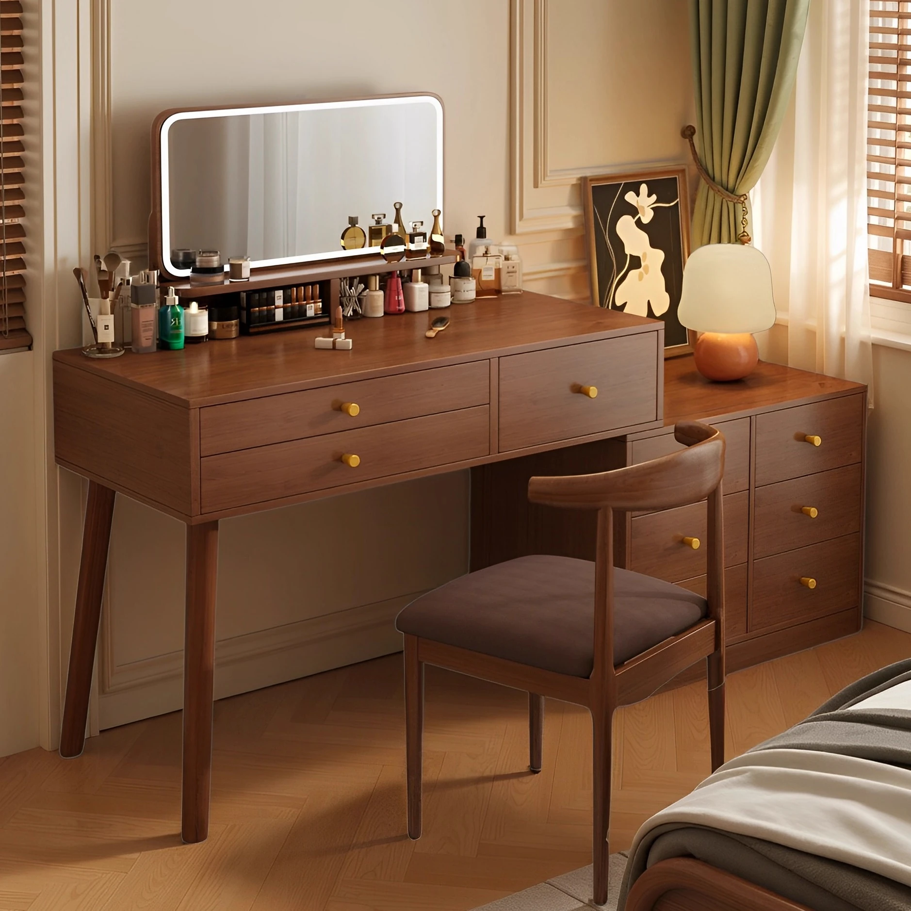 Vintage-Inspired New Chinese Style Makeup Vanity Table - 2025 New Model for Small Spaces, Multifunctional Nightstand & Bedroom Storage Cabinet