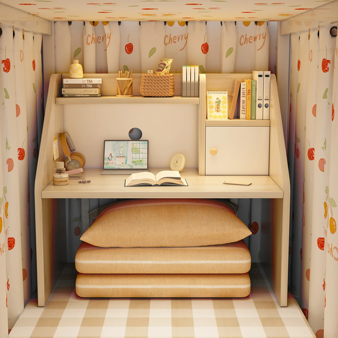 大学生必見!二段ベッドに最適な寝室用デスク - コンパクトで収納力抜群、勉強や作業に最適なデザイン!パソコンデスクとしても活躍する便利な置き棚付き。快適な学びの空間を提供します!