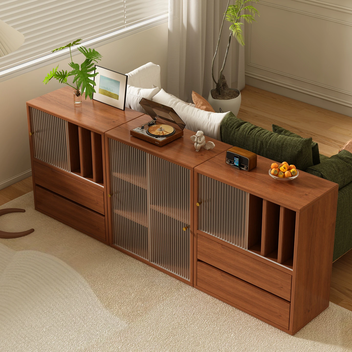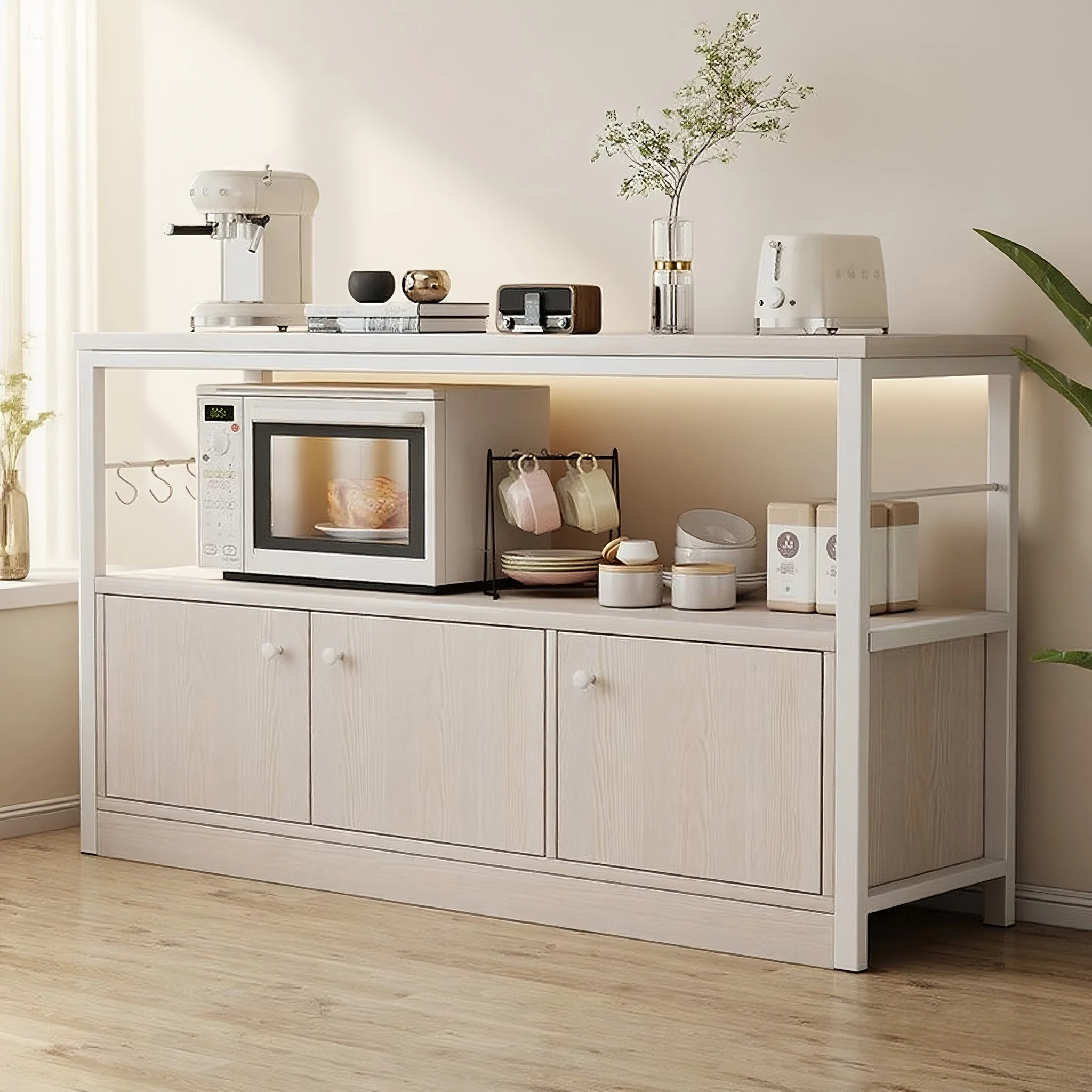 壁に寄せて置ける新型2025年版、茶や飲み物の収納に最適なリビング用サイドボード。コンパクトなサイズで、シンプルながらおしゃれなデザインが魅力の収納キャビネット。限られたスペースでもスッキリと整理整頓!