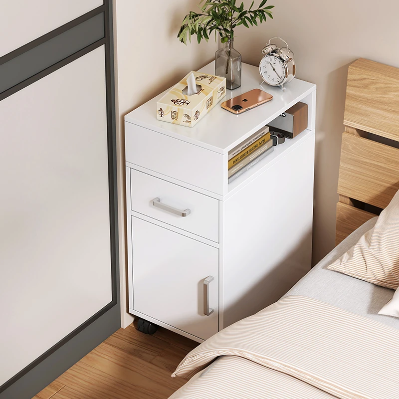 現代的でシンプルなデザインの小型ナイトテーブル、キャスター付きで移動も簡単!ベッドサイドの狭いスペースにもぴったりな収納キャビネット。あなたの寝室をスタイリッシュに演出する必需品!