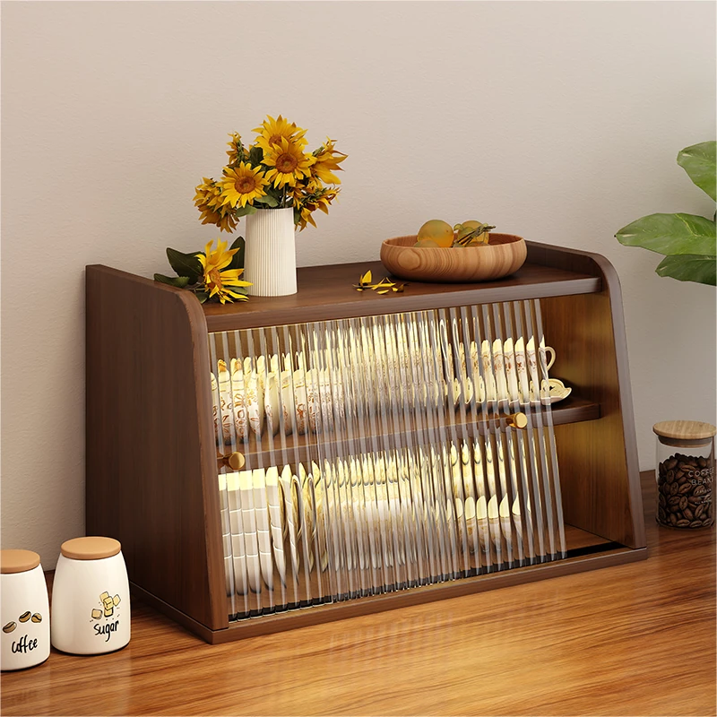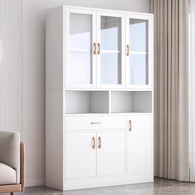 壁にぴったり!スタイリッシュな茶棚付きダイニングキャビネット - キッチン収納に最適で、埃から守るデザイン。家庭にぴったりの置物ラックで、整理整頓も楽々!