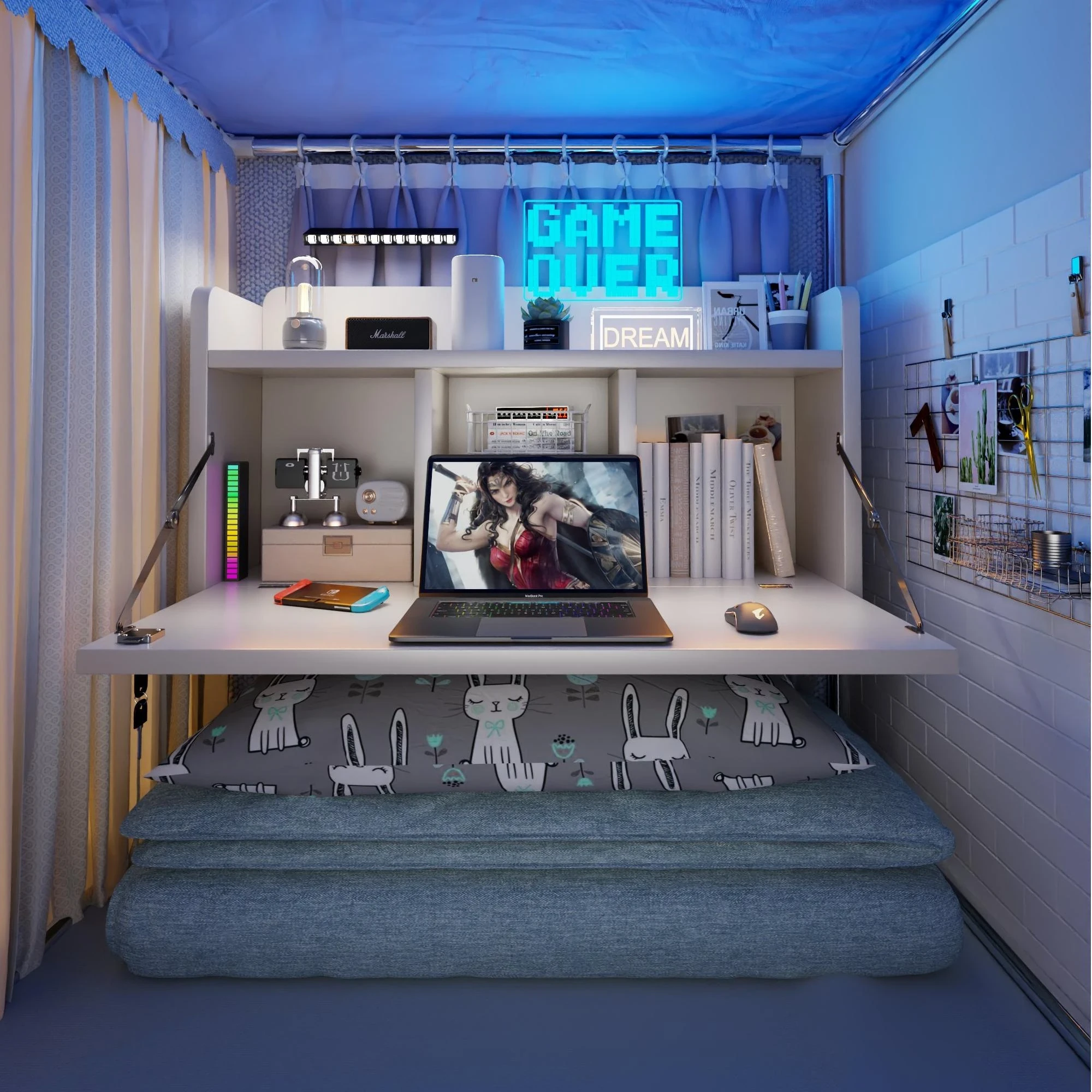 大学生必見!宿舎の上下二段ベッド対応、快適な寝床用テーブル。コンパクトなデザインで、パソコン作業やゲームに最適なラザルテーブル。あなたの寝室をスタイリッシュに変える!