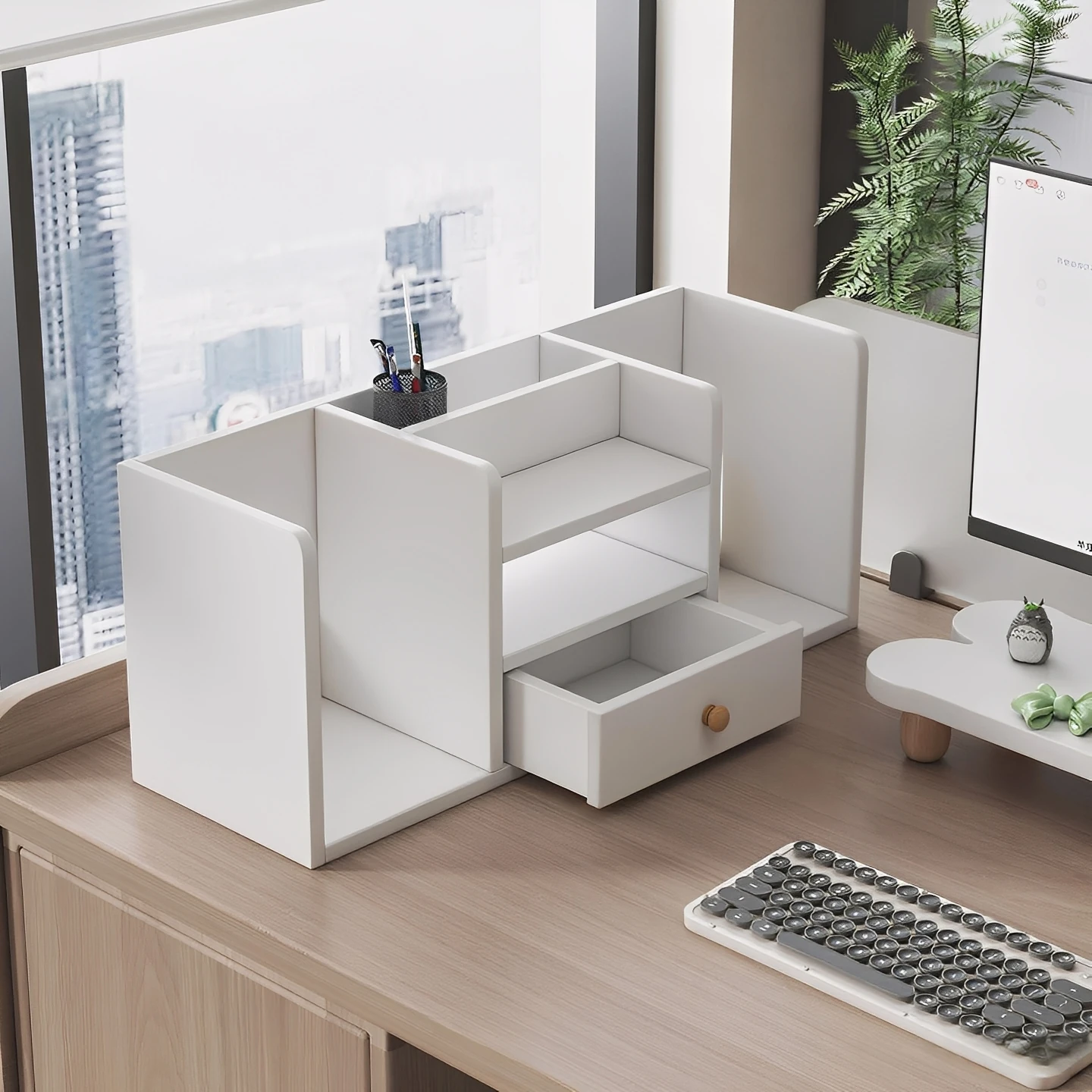 デスクオーガナイザー - 学生や働く方に最適なデスク上収納キャビネット!整理整頓で作業効率アップ!省スペース設計の小型書棚、宿舎やオフィスにぴったり!