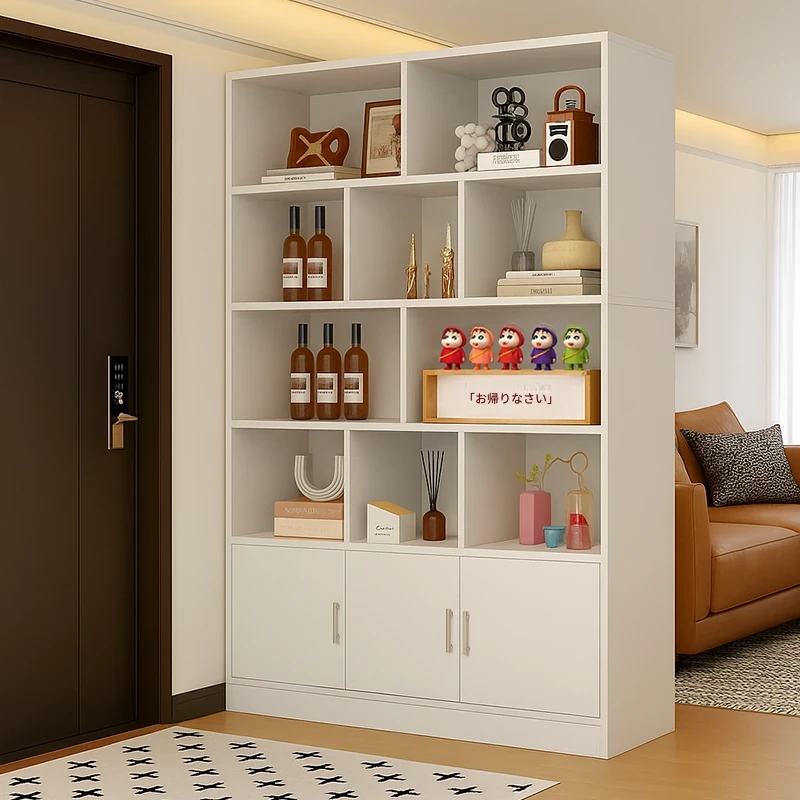 新作!玄関収納キャビネット - ドア正面に最適な屏風スタイルのリビング間仕切り、壁掛け収納、家庭用ワインキャビネットとしても使える多機能収納家具!おしゃれで実用的な空間を演出!