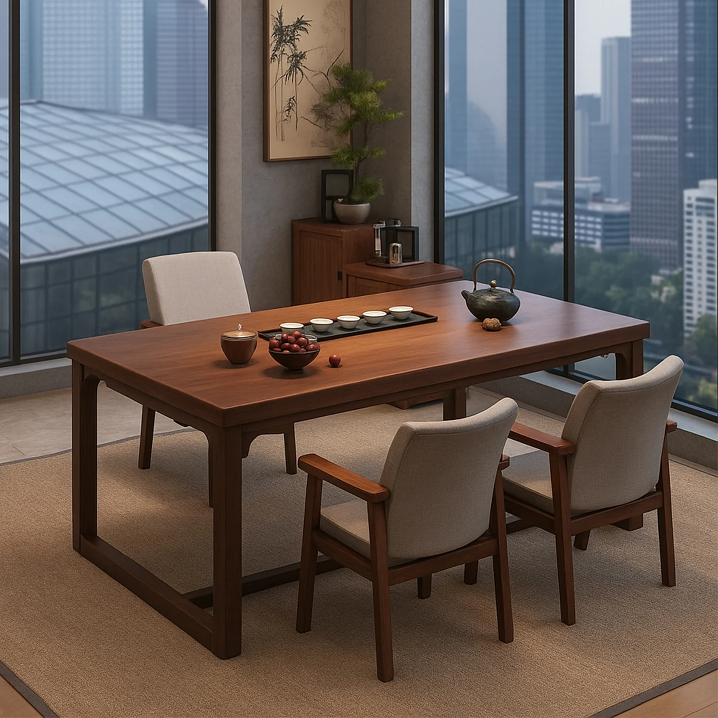 新中式スタイルの高級茶卓椅子セット - 家庭用バルコニーにもぴったり!二用途の茶台で、オフィスでも小型の茶器を楽しめます。上質なひとときを提供するアイテムです!