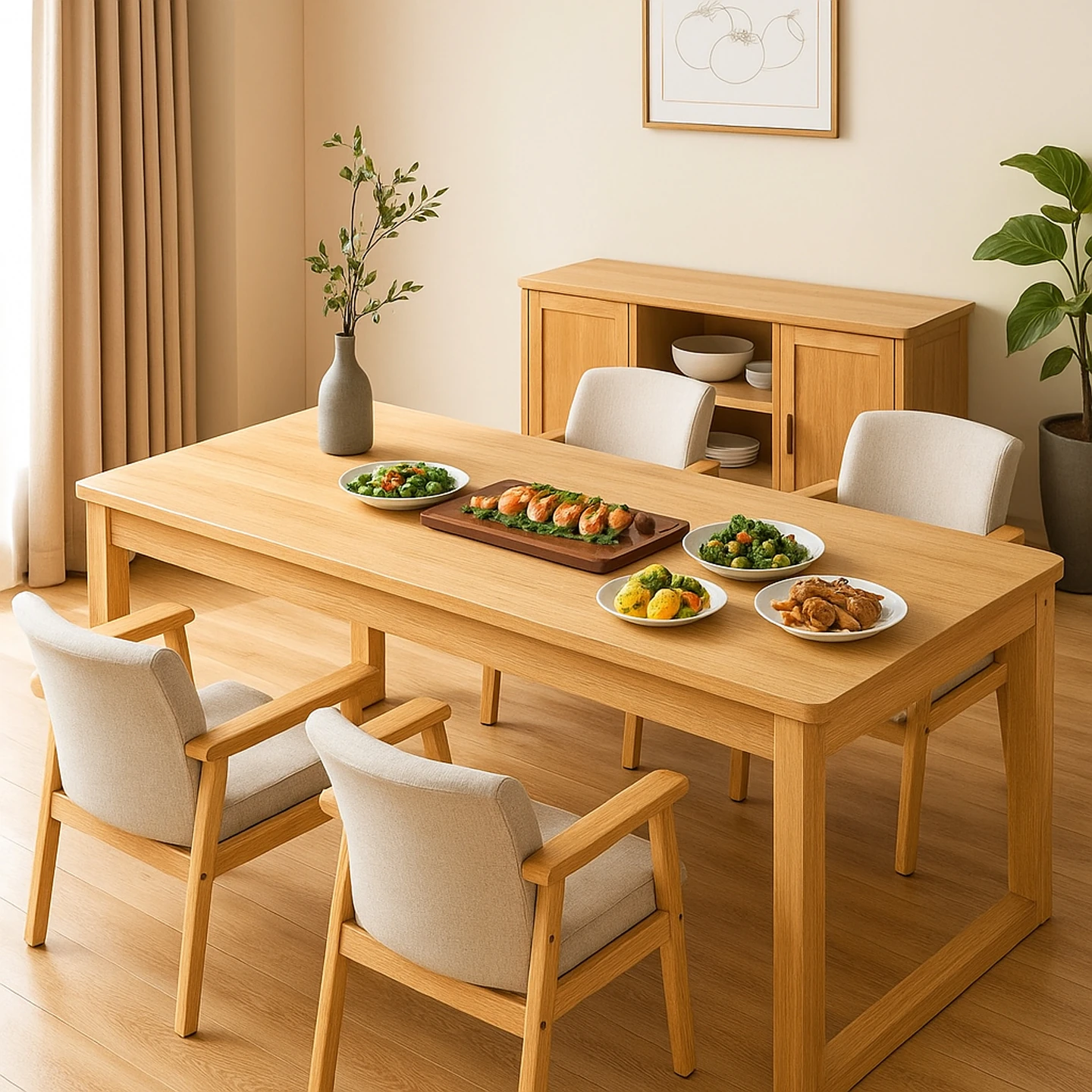 2025年新作!原木風のモダンミニマリズムダイニングセット - 小さなお部屋にぴったりな経済的なテーブル&チェアのコンビネーションで、快適な食事空間を実現!