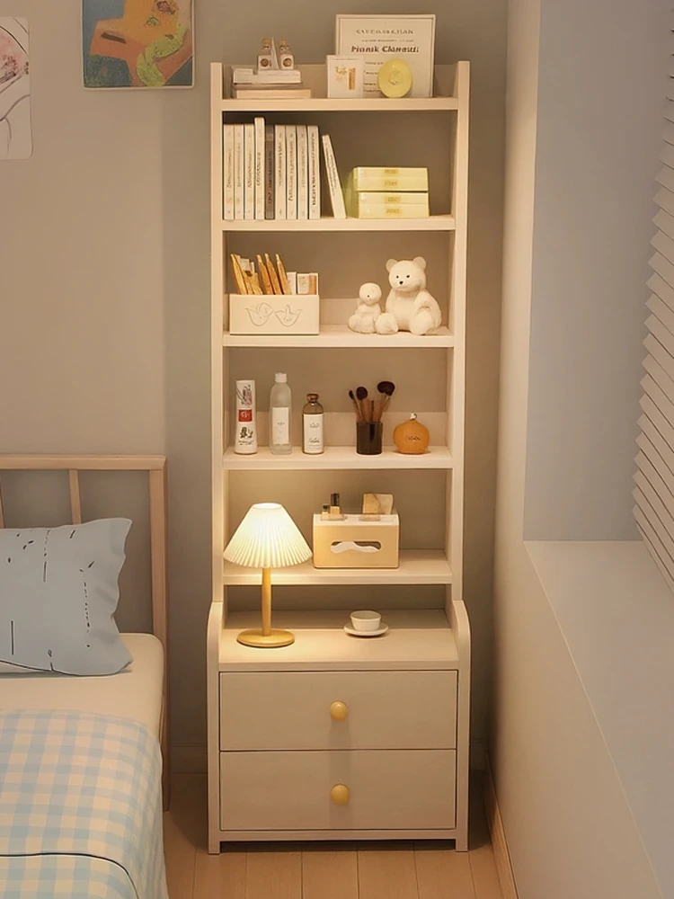 寝室必見!多機能ベッドサイドキャビネット - 高さ調整可能な収納棚、書籍や小物をすっきり整理!おしゃれで実用的なマルチラック。あなたの生活空間をグレードアップ!
