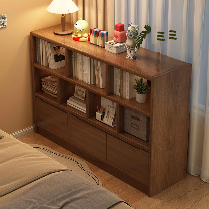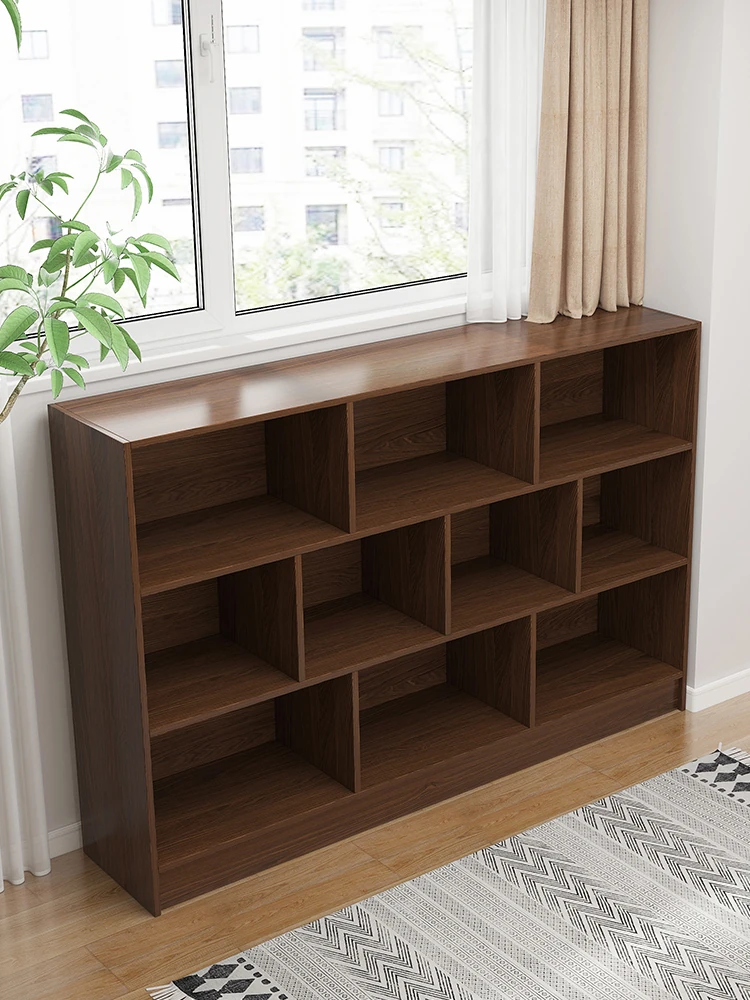 中古風の本棚兼収納キャビネット - 壁にぴったりフィットするリビングルーム用の窓際ローボード!ベッドサイドや幼稚園にも最適な格子収納!おしゃれで機能的な収納スペースを手に入れましょう!