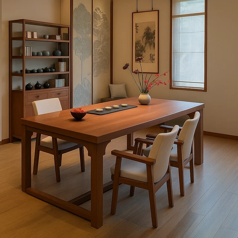 ラグジュアリーな書斎用デスク|シンプルでスタイリッシュな長方形テーブル|家庭用・茶室・商業利用にも最適!一体型デザインで高級感を演出。快適な作業空間を提供します。
