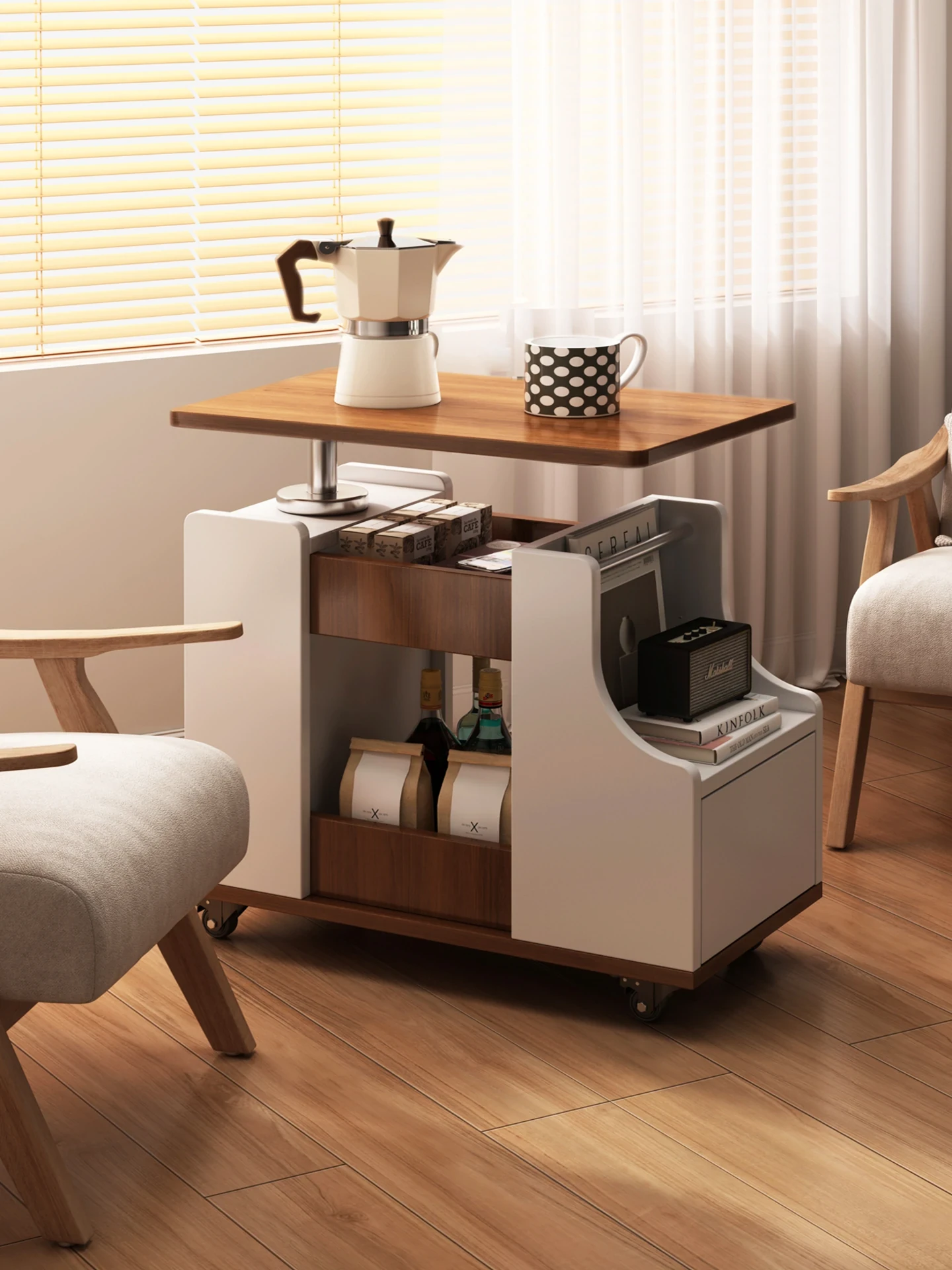 昇降&回転可能なサイドテーブル!小さなリビングにぴったりの移動式コーヒーテーブル、ソファサイドにも最適なコンパクトデザイン。バルコニーにも使える便利なカート!