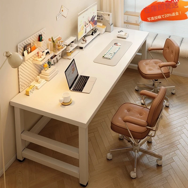 シンプルでモダンな2人用パソコンデスク|ホワイトカラーの家庭用学習デスク|学生やおしゃれな寝室に最適!快適な作業環境を提供するスタイリッシュなデザインの書き物デスク。