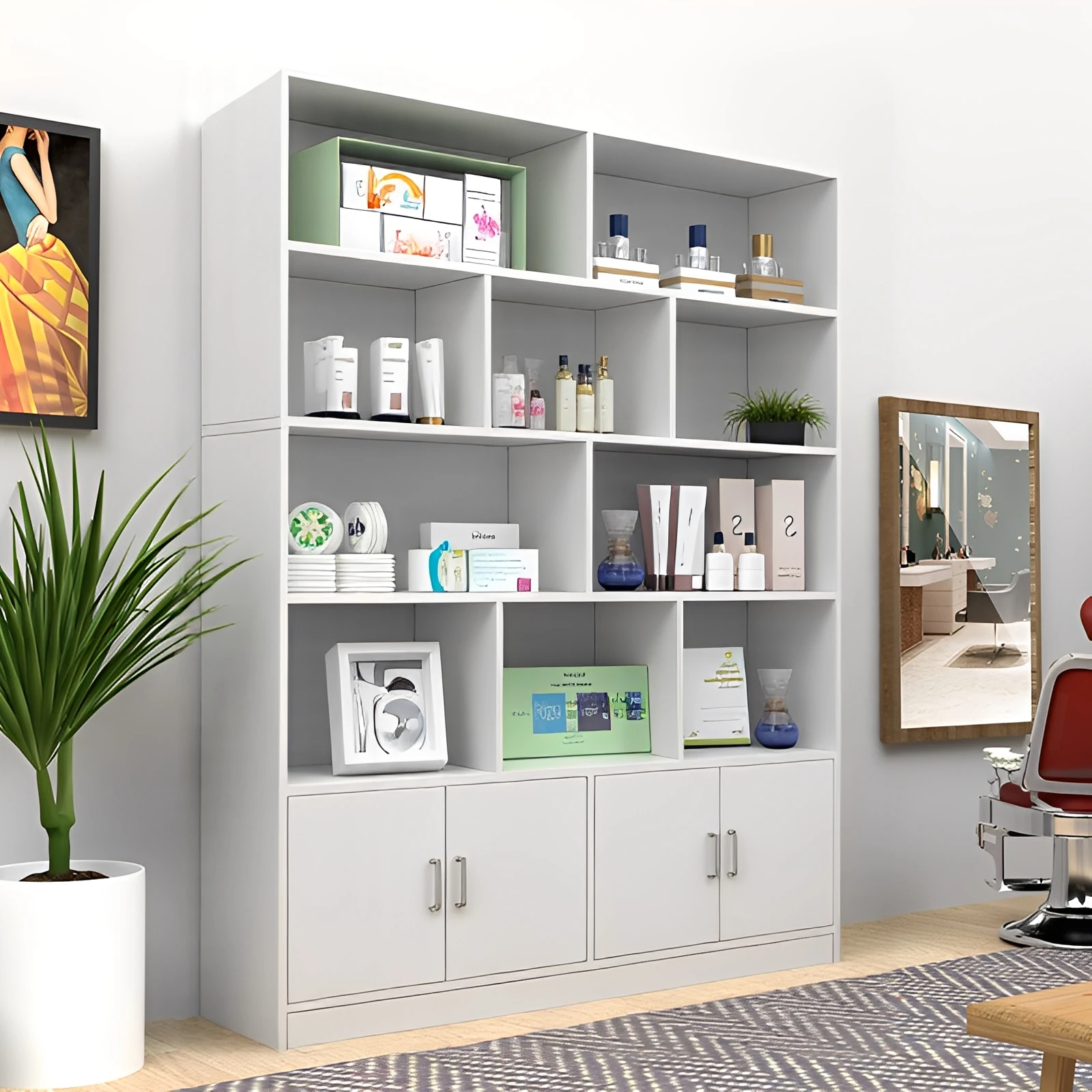 美容室専用!理髪店のディスプレイキャビネット、収納力抜群のツールキャビネット。スタイリッシュな仕切りで、すっきり整理整頓。あなたのサロンを魅力的に演出する必需品!