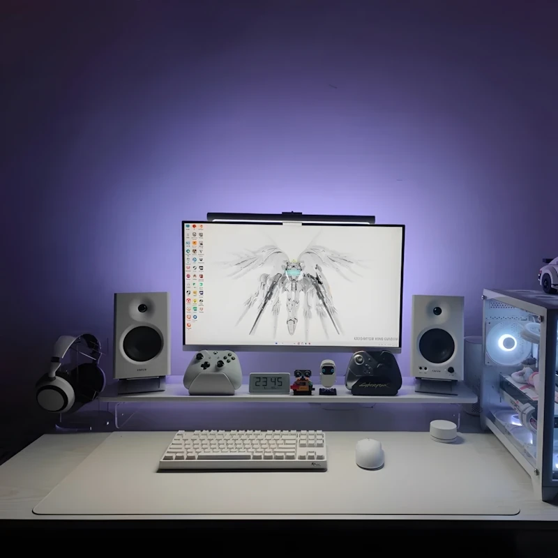 浮遊感を楽しむ!ゲーミングデスクに最適なモニター昇降スタンド - 家庭用デスク上の便利な収納ラック!