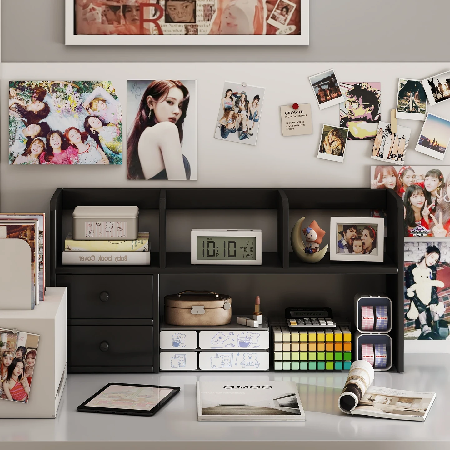 シンプルなデザインのデスク用本棚|学生寮に最適!おしゃれな収納ラック|多層式&伸縮可能で、家庭やオフィスの整理整頓にぴったり|快適な作業環境を実現!